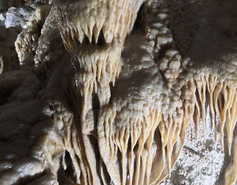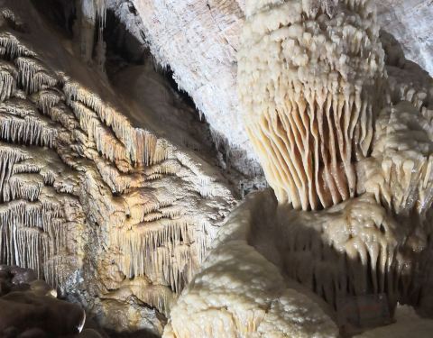 洞内不是很大,整体白光可以看到钟乳石本身颜色,天然造型栩栩如生,分批进去有工作人员带领讲解,洞...洞内不是很大,整体白光可以看到钟乳石本身颜色,天然造型栩栩如生,分批进去有工作人员带领讲解,洞内气温14度左右,偶尔会有滴水