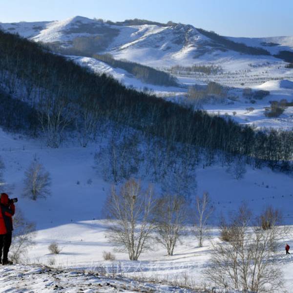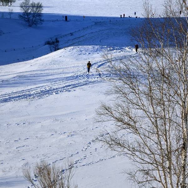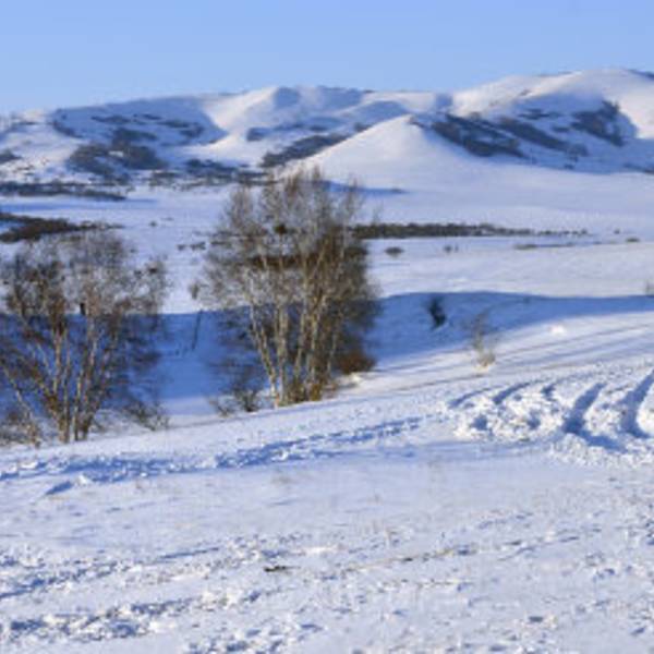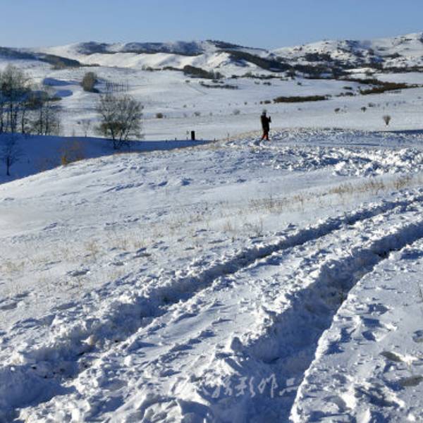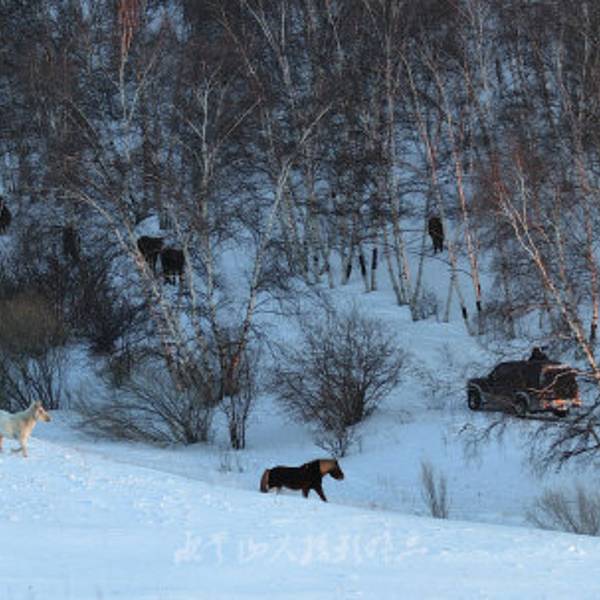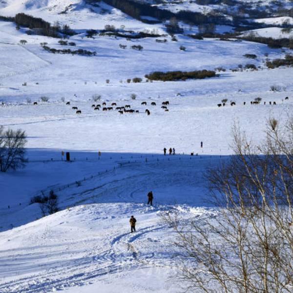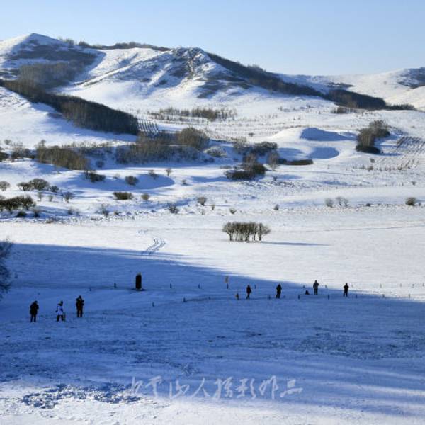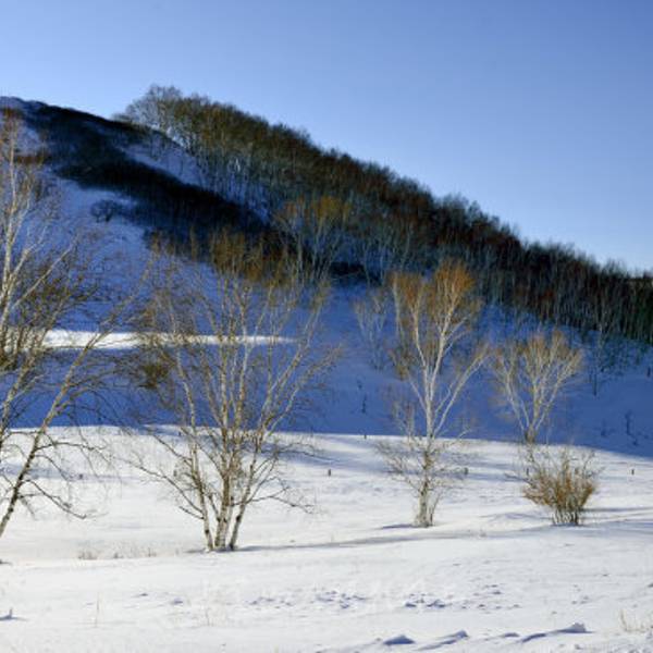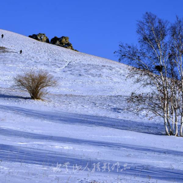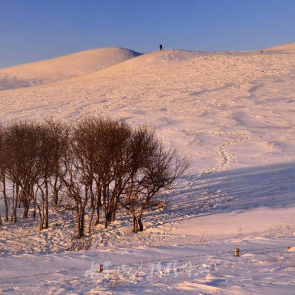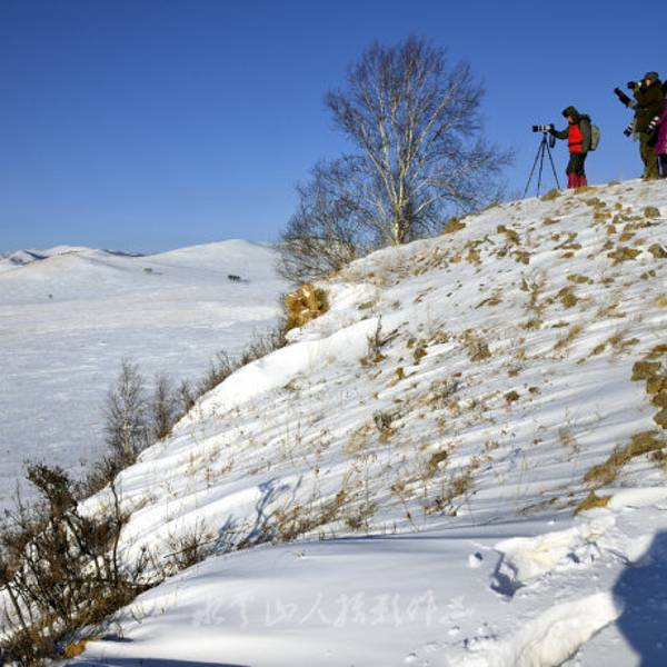 北国风光,晴空雪原,水墨桦林,塞马点点。16点返回到夹皮沟,拍摄桦林落日牛羊下