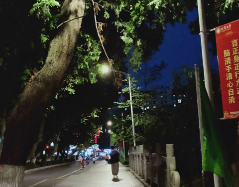 校园夜晚的风景很漂亮,它也是全国重点大学之一