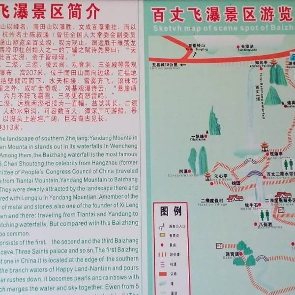 左手进缺口过农家乐(桥另一头也有两家规模不小)停车场景区标志石就是售票处了, 文成百丈漈原价6...出名人故居步行约20分钟到了南田车站,在市场旁,南田至文成中巴我坐的车下午1点开,最晚一班下午5点,到百丈漈上入口,右手路边就是天顶湖。左手进缺口过农家乐(桥另一头也有两家规模不小)停车场景区标志石就...出名人故居步行约20分钟到了南田车站,在市场旁,南田至文成中巴我坐的车下午1点开,最晚一班下午5点,到百丈漈上入口,右手路边就是天顶湖。左手进缺口过农家乐(桥另一头也有两家规模不小)停车场景区标志石就是售票处了, 文成百丈漈原价65元,我是网订60要上入口这给发票不给门票,我看到百度地图上说他网订50,我办网订填表手续时问了售票处女说没50这价的,60已最低了。进去后是从上往下游三漈最陡的是这段,主要是到一漈的路台阶又多又陡,过一漈就好多了一游客在这路上方横伸树枝上玩单杠,不过还没胆子大到在杠上翻跟头看到一漈上部分了,前面还只闻其声 展开