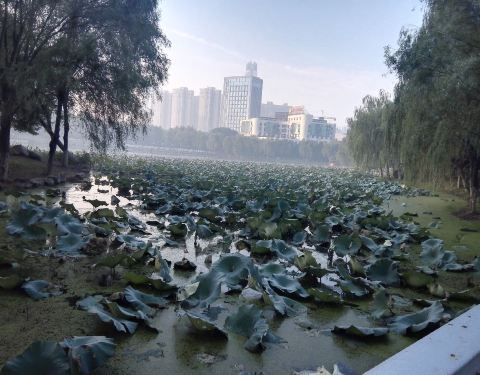 2016.11.24,下火车后由于太早了没事干,就一路瞎晃到了后襄河公园,从此养成了我到一个城市没事干就去逛公园的习惯。公园中挺多老人晨练,还有荷花,池水。休闲没事是逛逛公园还是不错的选择。