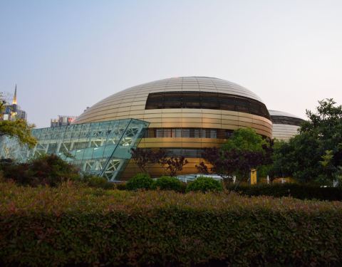 外形奇特的艺术中心,由古代乐器陶埙造型演变而来。