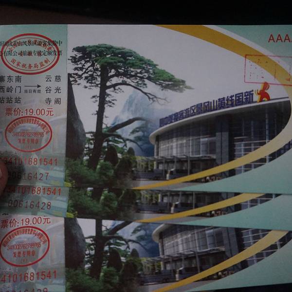 黄山的集散中心是乘坐上山大巴的地方,就在汤口镇。黄山区分前山和后山,前山是旧索道线路,名为玉屏索道,运营时间是从早上7点到下午5点;后山为新索道线路,名为云谷寺索道,运营时间是从早上7点半到下午4点半。在购买大巴车票的时候需要和售票员说明。我们选择的是从云谷寺索道上山,从集散中心到云谷寺售票处的大巴费用为19元/人。