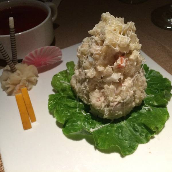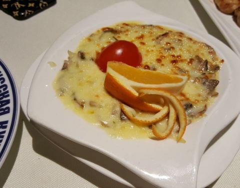 菠萝饭味道清香浓郁,俄式拌香鸡开胃菜,造型感十足,好次。蒜香面包量很足,松脆可口,很香,好次。牛舌味道一般。服务很好,晚上吃饭还有表演,非常不错。