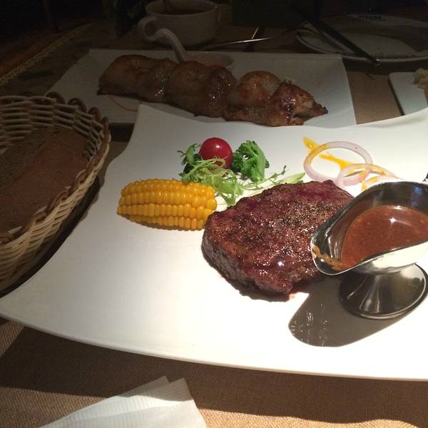 很早都长草了,之前他家经常搞活动,这次在网上团购的双人餐确认两个人吃足以,就是去之前打电话问要不要排好,接电话的说可能要排一小会,我就听他的没有在美团上排好,结果到了一看前面14桌,很是郁闷,最后等...很早都长草了,之前他家经常搞活动,这次在网上团购的双人餐确认两个人吃足以,就是去之前打电话问要不要排好,接电话的说可能要排一小会,我就听他的没有在美团上排好,结果到了一看前面14桌,很是郁闷,最后等了45分钟才排到我们,由于排位超过半小时,还能抽奖,抽了一份奶油蘑菇汤,好吧,上去就三大碗汤我和老公给喝了,结果搞得饭吃不下了,先说说牛排,我们要的五分熟,他家牛排是我今年吃的最美味的牛排,由于光线暗,我也不太清楚,反正是肉很嫩,可能稍微有点血水,但特别可口,还有他家的那个鸡肉大串超级超级嫩,也没有怪味,也不错,红菜汤我认为没有奶油蘑菇汤好喝,俄式拌香鸡就像土豆泥味道嘛一般般,下次两个人可以单点,品尝他家其他的真的还不错。
