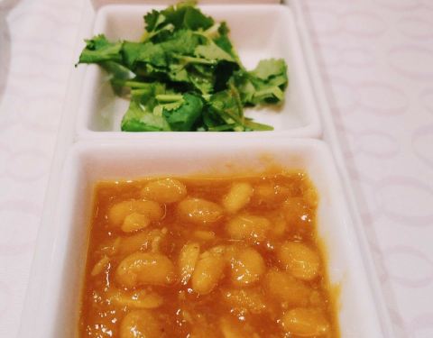 可以说在潮堂get了吃过最好的潮汕牛肉丸了。丸子表面开了花刀非常入味,但又不会抢了牛肉本身的味道,切成两半可圈可点,口感劲道! 再说另一款必点的菜式——海鲜砂锅粥:真的与众不同!一窝粥里藏着小十只大虾,虾线已经剃过,虾肉Q弹,分外新鲜,唯一一点遗憾是需要自己剥壳;粥里还有很多鱼肉、贝类,可以说是很良心了;加分项是洒在表面的香芹碎,拌在海鲜粥里会突出鲜味且更显爽口。一例粥的量足够两个姑娘吃饱;如果还吃其他菜的话,足够3-4人分享。