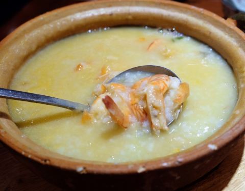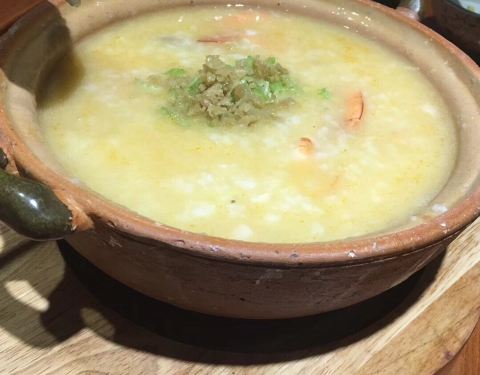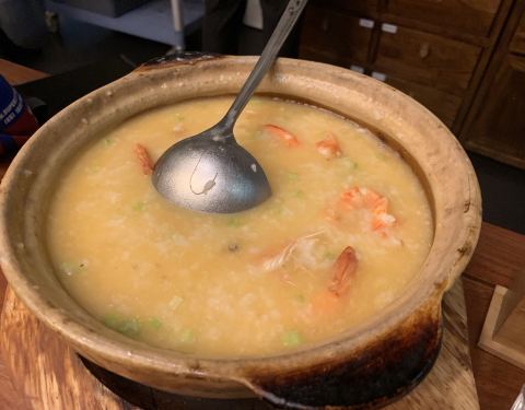 开放式的餐厅设计,面积不大,木质的桌椅,碎花的碗碟,透露出温馨自然的气息。时不时会定期创新,推出季节美食,主打海鮮粥,里面有蝦,蛤蜊,蛋等许多食材。