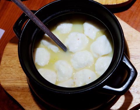 - 丸子表面开了花刀非常入味,但又不会抢了牛肉本身的味道,切成两半可圈可点,口感劲道