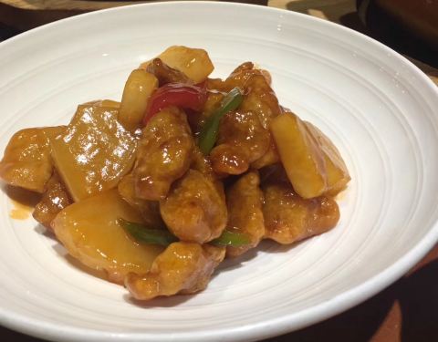 菠萝咕咾肉可谓是很看得出功夫的一道菜了,每颗肉肉都是晶莹剔透,咬上一口能感觉到凤梨香气,酸酸甜甜还挺开胃的~