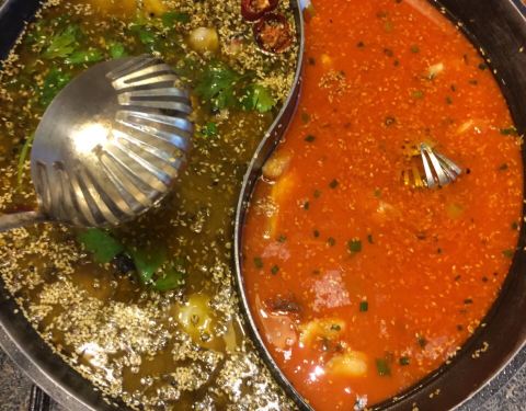 吃了几顿新疆本地菜烤羊腿、大盘鸡什么的,大家战斗力已经搞不动了,于是决定去吃鱼火锅。味道真的很好吃,点的激情椒麻和蕃茄双拼汤锅,鱼是梭边鱼,味道超级好,有四川地道的麻味!还有就是现磨的豆浆和豆皮也...