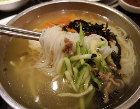 本家就在北海稻酒店的旁边,之前住过北海道酒店,所以对这边还是比较熟悉,直接停去,旁边的停车场就是了,虽然今天比较多车,但是位置还是有的。 里面真的是挺大的,估计能够容纳几百人,而且装修也的确是很有韩国的风格,在这边就餐是可以免费试穿韩服的,有背景,可以拍照。 烤肉是相当不错,不过因为中午过来不想吃烤肉,就点了,这边的定食,猪肉蛋饼还真的是挺有特色的,有点酸酸的,吃起来算是比较的开胃,因为有人不是特别舒服,就没有吃冷面点了一个温水面,觉得还是冷面比较好吃一点吧口感方面。 总体来说服务还真的是相当的不错,业务也是特别的熟悉,坐在这边也是挺舒适的,是非常正宗的韩国餐厅。