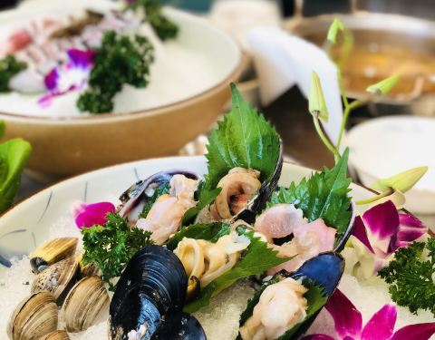 中华城三楼的一叶舟海鲜小火锅重新开业啦,晚餐就来涮一涮吧。 明亮的大厅正对着镇海路的街景,傍晚的时候正好可以一边欣赏夕阳一边享受美食。 一人一口小火锅的形式,川辣、菌菇、无花果、番茄、黑蒜、花胶鸡等等,锅底选择更多了。 无论海鲜还是肉类,食材都很优质新鲜。雪花牛肉,至尊肥牛和梅花猪肉都超大片的,纹理细腻清晰,肥瘦相间,黑蒜汤底涮过,柔嫩多汁伴随着浓香。 海鲜拼盘端上桌,虾足还在不停的舞动,和水灵灵的贝壳类一起下到锅里,不一会儿就熟了,虾肉弹牙鲜甜,北极贝脆嫩鲜美,再来一颗海胆手打虾滑,Q爽美味。最后再品汤,食材的精华融入其中,浓郁中透着清甜,回味无穷。 晚餐这么吃,一点都不怕胖哦! at 一叶舟·生鲜锅物(中华城店),思明南路189号中华城南区三楼
