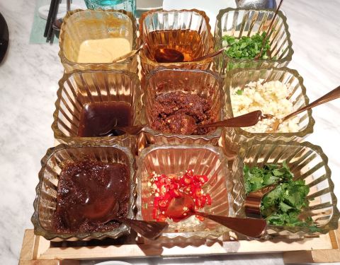 - 一人一口小火锅的形式,川辣、菌菇、无花果、番茄、黑蒜、花胶鸡等等,锅底选择更多了
