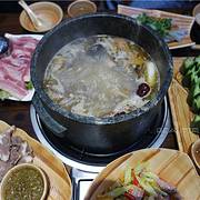 當地人介紹的一家很特別的店,可以一边火鍋,一边烤东西。现在是1月份的丽江,天氣算是比较寒冷,坐在烤爐上吃,确實是一個很好主意。我们要了瑪咖鍋底,半只土鸡,松茸茹,嫩牛肉,羊排,还有一些蔬菜。所有的肉...當地人介紹的一家很特別的店,可以一边火鍋,一边烤东西。现在是1月份的丽江,天氣算是比较寒冷,坐在烤爐上吃,确實是一個很好主意。我们要了瑪咖鍋底,半只土鸡,松茸茹,嫩牛肉,羊排,还有一些蔬菜。所有的肉类和茹都是冰鮮的,沒有新鮮。嫩牛肉是嫩,但个人覚得腌过頭了,肉味都沒有。最後的火鍋汤还不錯,因為半鸡和瑪咖下去熬,特甜。服务生都挺勤勞,随叫随到。