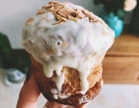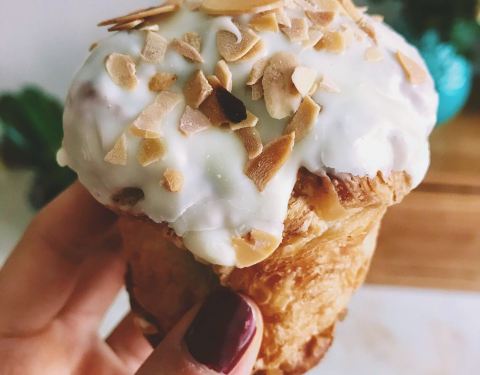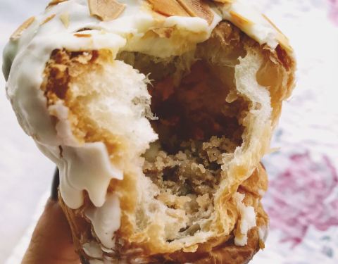 推荐“栗子奶油起酥” 绵密栗子奶油形成一个硬壳,咬开脆脆的 香脆巴旦木片,一直在掉渣 栗子泥...
