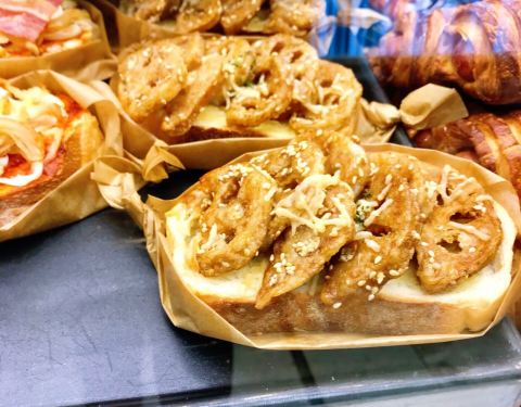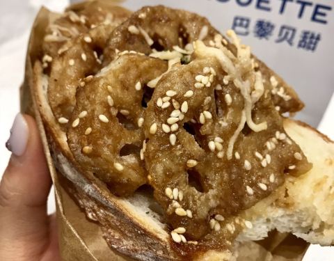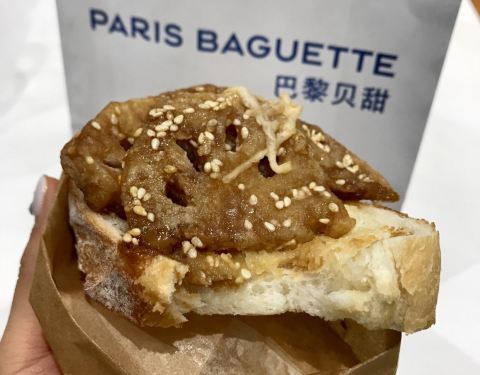 藕夹与面包的完美结合,像吃饭一样吃面包~ 作为巴黎贝甜野生代言人,看到新品上市又忍不住尝试了。 这一季“暖冬新品面包”主打“超有料”主题,新品有烤牛肉披萨饺、鸡肉培根烤面包、美味香藕烤面包、萌萌番茄披萨、香肠土豆法棍、芝士香肠烤面包,光听吗,名字,每一款都是硬菜啊! 先尝试了下“美味香藕烤面包”,一小块切片面包,烤制外皮酥脆,上面叠放着烤藕片,特别像咱们天津菜里的炸藕夹!藕片裹着面糊烤制,甜咸口儿,带着浓浓的蒜香,酱汁完全覆盖在藕片上,呈琥珀质感,芝麻粒提香,哈哈,色香味俱全,一块管饱。 比较佩服这一季新品的脑洞,像吃饭一样吃面包是一种怎样的体验~试试就知道了~
