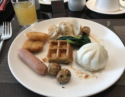 文华是昆明最好的酒店,自助餐厅也是豪华无比。自助早餐10点结束,赶在9点半入,客人还不少。服务态度相当好,询问是否需要咖啡,这是5星级酒店必须的,但去过那么多酒店不是每家都提供。供应的餐品到也无甚惊艳,该有的中西式都有了,这里有鹌鹑蛋,到是第一次见到。小朋友超过一米2就全价了,比较贵。