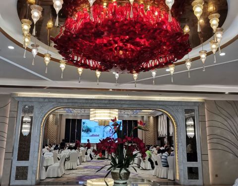 两旁有希腊式雕塑小件,屏幕也够大,可以根据自身的要求去添加甜品之类的东西。 停车就不是很友好,虽然位置挺多,但是收费贵,12元一小时,15分钟起跳,参加宴会只能提供2小时免费停车,严重不足够。