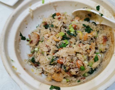 比较喜欢这个汤,有点海产,虽然没有什么特别名贵的品种,但是吃羹汤本身就是比较适合冬天的。 蒜香骨就比较一般,还有那个鱼肉,有点软,不够脆,也有可能是放久了的原因。