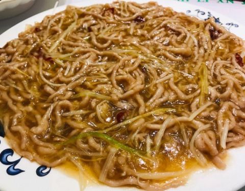 原来安家罩饼晚上做夜宵生意,11点才打烊。“醋溜苜蓿肉”也不错。总店叫是叫牛肉罩饼,但实际以炒菜为主