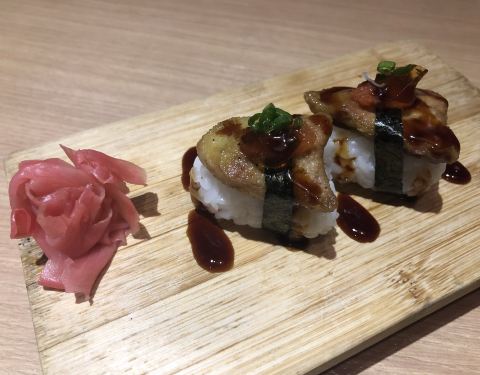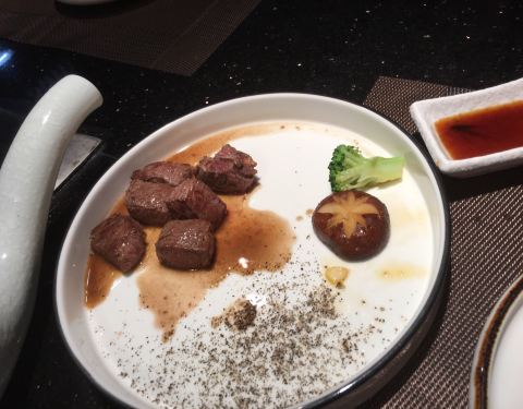 客户请客吃饭,选了虹桥的这家饭店,一直听说虹桥这里烤肉很多,而且普遍水准都比较高,于是这次是兴冲冲地而来,也确实是满意而归。这家饭店地处一个商城的二楼,外面环境一般,但是店堂里的环境还是很不错的,日式小包间,各式桌椅都不错。我们选了吧台,反正两个人也能喝酒聊天,吧台足够了。菜品很不错,特别日本烤牛排菲力,特别棒,我和客户来了一块又一块,另外,鱼生做的也不错,烤鸡蛋比较有特色,味道也很不错。总体来说,蛮好的,唯独就是有个小蟑螂总是乱飞,如果能打掉就更好了。