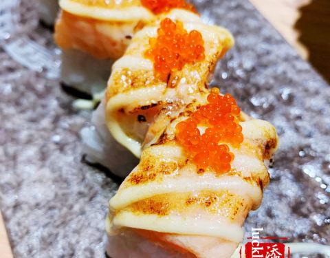 - 尤其是厚切三文鱼刺身,吃起来特别过瘾。另外海鲜牛油果沙拉里也放了不少三文鱼哦