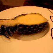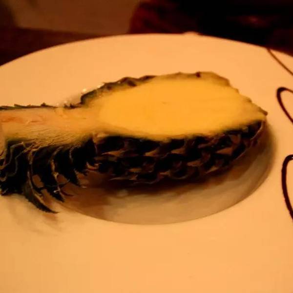 菠萝雪芭 这个是半只菠萝刨开,中间是满满的菠萝雪芭,里面吃得到菠萝果粒的 清凉冰爽,入口即化,赞~前菜搭配普鲁塞克起泡酒1瓶