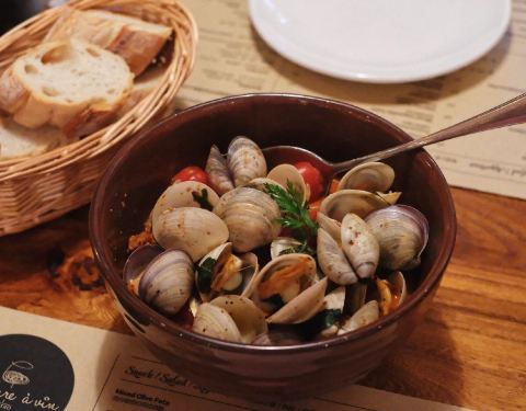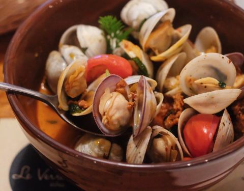 辣香肠煮蛤蜊 看名字就觉得很下酒,说是香肠,其实已经化成肉沫了,香味煮进番茄汤底中,又被吸收进蛤蜊里,成就了蛤蜊肉的鲜香。 生牛肉塔塔 与常见的牛肉塔塔不同,最外面裹了薄牛肉片,看起来像个肉团子。切开...辣香肠煮蛤蜊 看名字就觉得很下酒,说是香肠,其实已经化成肉沫了,香味煮进番茄汤底中,又被吸收进蛤蜊里,成就了蛤蜊肉的鲜香。 生牛肉塔塔 与常见的牛肉塔塔不同,最外面裹了薄牛肉片,看起来像个肉团子。切开以后才发现里面除了牛肉块,还有洋葱和青椒。牛肉鲜甜软嫩,洋葱清甜爽脆,油醋加胡椒的调味简单却足够味美了。 蓝奶酪土豆面团 铁打不动要点的。这次酱汁有点少,稍微干了一点,虽然还是好吃的,但是容易腻。