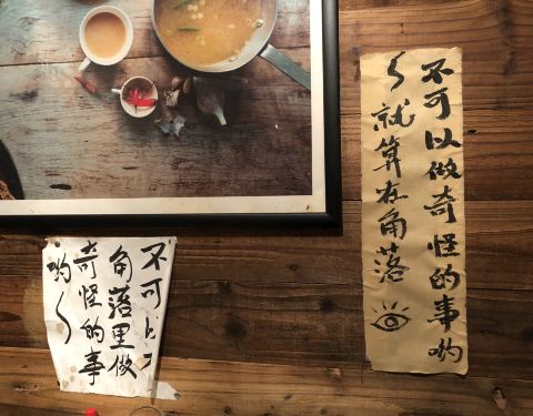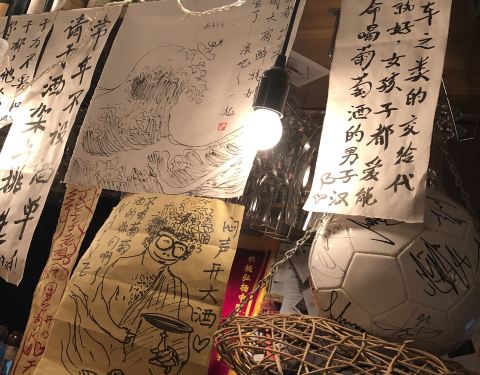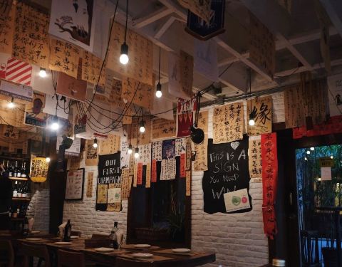 位于长乐路靠近华山路上的一家餐厅,门口的"日式居酒屋",菜单上是意大利菜,店里是看不完的酒瓶,和贴满一张张的"不醉符",其中的"李白乘舟将欲行,忽闻岸上开香槟",会不会把李白笑哭。这里特别适合聚会...