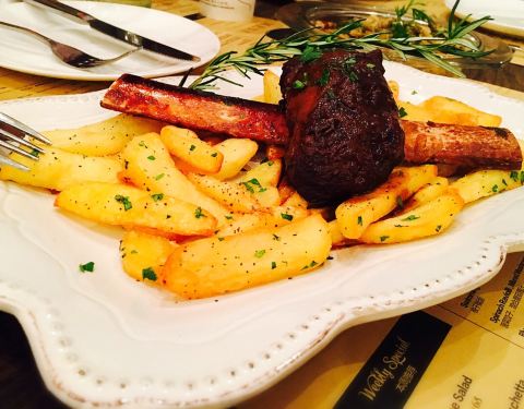 作为必可登推荐的餐厅,这家餐厅的食物还是让我有些失望了,可能正如同他家小黑板上所写,食物一般,酒才是餐厅自豪的部分。 去的时候,章鱼色拉已经没有了。前菜点的蛏子,又老,还有沙子,不推荐。慢炖牛肋排还是挺好吃的,又酥又入味,配的薯条一般。海鲜饭味道还不错,口感不好,太湿了。战斧牛排端上来的时候,牛排已经冷了!!!牛肉味道过得去,但是冷的牛排,感觉总是不太舒服。ps:餐厅里没有免费的水供应。 做了一家意大利餐厅,这家店的环境有点日式的感觉。餐厅环境不错,厕所间有点乱,总有股水沟的味道。