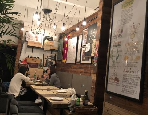 位于长乐路靠近华山路上的一家餐厅,门口的"日式居酒屋",菜单上是意大利菜,店里是看不完的酒瓶,和贴满一张张的"不醉符",其中的"李白乘舟将欲行,忽闻岸上开香槟",会不会把李白笑哭。这里特别适合聚会,价格很实惠,份量十足,点了几样味道都非常不错。其中的青口贝一定要点,超好吃,喝酒聊天好去处!到这里必须要预订,因为常常订满。