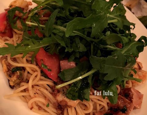 蛤蜊细面,大蒜橄榄油、干辣椒和青海苔 这道蛮好吃的 蛤蜊的鲜美配清爽的意面适合夏天