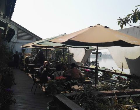 咖啡店环境非常好,室内部分空调开放,舒适慵懒,室外空气清新,湖景尽收眼底,只是遮阳伞遮不住这强烈的太阳光。喝了杯咖啡,中午时分点了份石锅饭,味道极好。饭后点了杯茶,茶杯很有特色,完美叠在一起的两层,上面是茶壶,下面是茶杯,很有创意。在这里和朋友相聚,消磨一天时光,感觉非常棒。