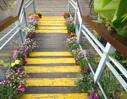 被这里吸引而来,是因为这郁郁葱葱的花花草草,午后的阳光很舒适,迎着湖光水色,没有太多的游人,也没有吵闹的路人,值得和时光共饮一杯。