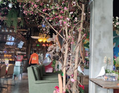 - 点餐牌是卡哇伊小熊玩偶,尤其适合拍照。咖啡店花草绿植很多,环境很好。个人很喜欢这家咖啡店