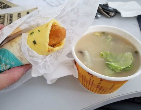 粥还好,不过吃了感觉还是皮蛋瘦肉粥好吃。早上没得饭吃,跑到九龙去买饭,还好开门。蛋卷有点偏甜啊