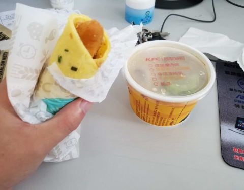 蛋卷有点偏甜啊。。。。粥还好,不过吃了感觉还是皮蛋瘦肉粥好吃。。。早上没得饭吃,跑到九龙去买饭,还好开门。。