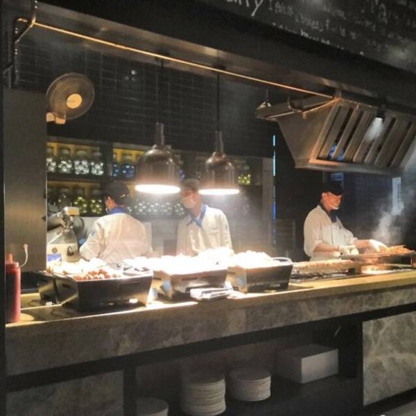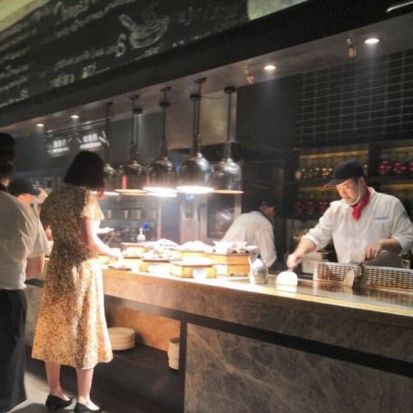 位置在金山万达3楼,靠近自动扶梯的位置,楼上上面就是万达影院。 环境还可以,每个明档都有操作和服务人员、明亮,干净。水产区有新鲜的圣子皇和蛤喇之类的,是活的,不过我们直接煮了吃,还可以明显感觉到很多沙子。 服务态度可以,没有不耐烦。只是不会太热情,毕竟是自助的,价格又不贵。不能要求太高。收东西之前服务员每桌都会询问是否还要拿东西。 产品种类不是特别多,其中比较受欢迎的是阿根廷红虾和烤肉串,不过大虾不是活的,所以口感不怎么样,肉质是绵的。 海鲜类的产品很少,都是些对虾和死的扇贝,生蚝那些。没有看到烤扇贝和生蚝… 个人比较喜欢吃他们的凤爪,外酥里嫩,很入味,入口一抿既化的感觉...