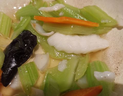 一品东坡肉,会配半碗米饭,真的还挺好吃,不吃肥肉的都觉得挺香的。 菜胆竹笋汤,口味一般,很清淡
