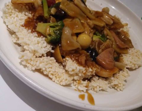 一品东坡肉,会配半碗米饭,真的还挺好吃,不吃肥肉的都觉得挺香的。 传统地道毛血旺,里面的料比较足,辣度低,下饭挺不错。 菜胆竹笋汤,口味一般,很清淡。 金银馒头,一口一个的那种大小,味道还可以。