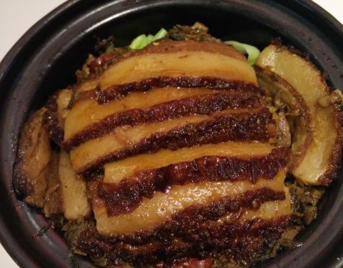 - 一品东坡肉,会配半碗米饭,真的还挺好吃,不吃肥肉的都觉得挺香的。 菜胆竹笋汤,口味一般,很清淡