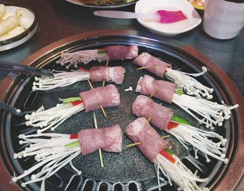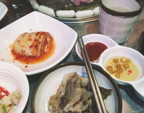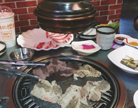 这家烤肉味道不错,换烤盘收盘子的速度也特别能跟上。我们选的是小圆桌,上面有个可以收缩的烟囱,吸烟效果不错,还蛮有感觉的。烤肉酱是自助的那种,送的小菜泡菜什么的也很好吃。还有免费的南瓜汤,我喝了整整...