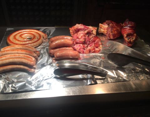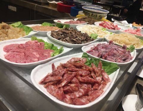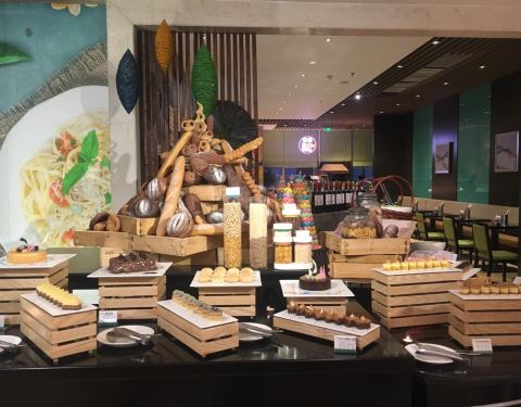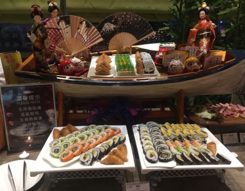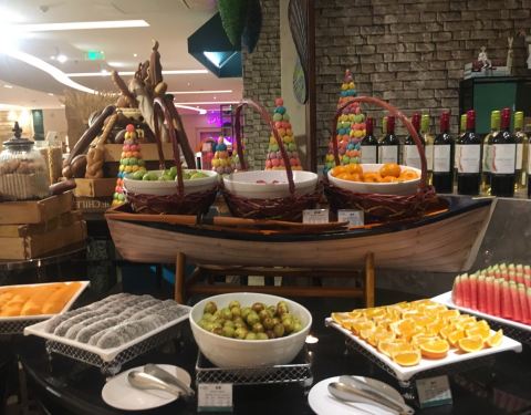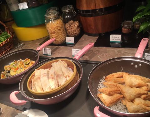 在酒店二楼 有瓦罐汤和拌粉 有火锅 值得推荐三文鱼和现场烤的披萨 服务周到 态度好