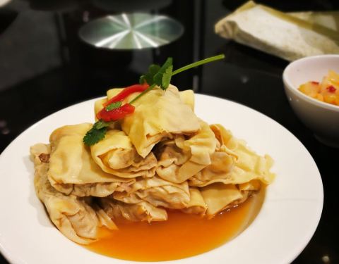 要过年了,丰收日生意兴隆,早几天订的包厢,结果只是大厅中隔出来的办包厢,包厢全满。雪菜黄鱼汤馄饨先吃,对喝酒有帮助,凉菜中特色炝海蜇脆酸甜,安吉竹林鸡皮黄肉嫩。丰收日红烧肉必点,她是一整块五花肉,色泽红润,肥而不腻。鸡汁百叶包和糖醋小排也是特色,很爱笋壳鱼的肉质细嫩,这次点的是石锅百味笋壳鱼,鱼外酥内嫩,浓浓的汤汁包裹着,越吃越入味,温度还能保持较长时间。酸汤肥牛,干锅花菜也可以,点心是生煎包粢饭糕,体现上海本帮特色,现在还有点心大礼包,58元一份,带回家过年吃肯定好。