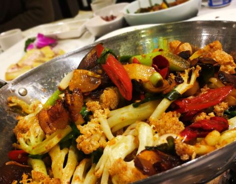 - 花菜炒的还不错,入味。失望。还是我点错了菜?外卖和堂吃差的有这么多嘛。 葱油饼一点葱香味都没