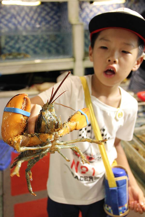 夜幕下的八市,摊贩比白天少了一些,原本一些摊点晚上摇身一变变成了大排档,依托市场的优势,做起了海鲜加工或者蒸汽海鲜等排挡生意,这些门店往往环境一般,店面不大,但却更有感觉吧。 在门店门口现场挑海鲜...