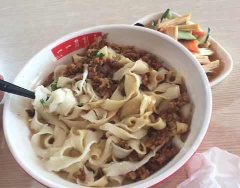 凉皮里边花生酱非常香,第一次吃就迷恋这个味道。服务员非常贴心,我说自己端过去即可,服务员说谢谢 。
