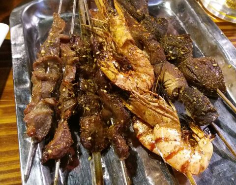 ...烤串量都很足掌中宝肉很多好吃 羊肉串也爱吃虾不新鲜个头小 带子很赞整块厚实的口感 有空还会再来