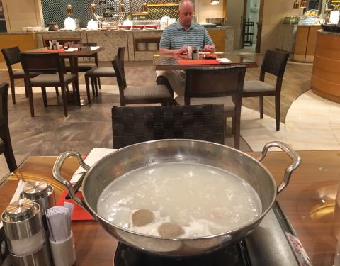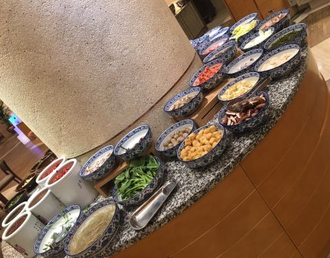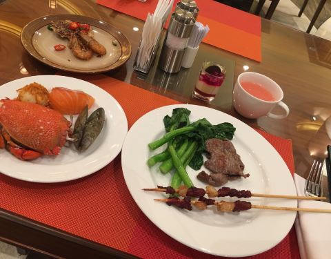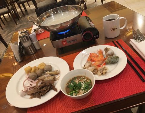 懒得再跑出去觅食了 就选了香格里拉一楼的自助餐 人比较少 菜品种类倒是还可以 有些品质远高于专业餐厅 比如煎牛排 非全熟 一小块一小块的 很嫩 包心牛丸虽说外皮没有绝对q弹 不过口感也是不错了 刺身区的虾 肉质不错 满满的新鲜感 螺类中规中矩吧 偶尔两个还有强烈腥臭味 老虎蟹就比较松软了 脆壳皮吃起来还算方便 点心区中等吧 没有让人眼前一亮的造型创意 火锅区倒是备货周到 食材和酱料堪比小火锅店 当然稍早用餐还有驻唱 服务还是不错吧 最后这位筷子用着很无奈 总体推荐