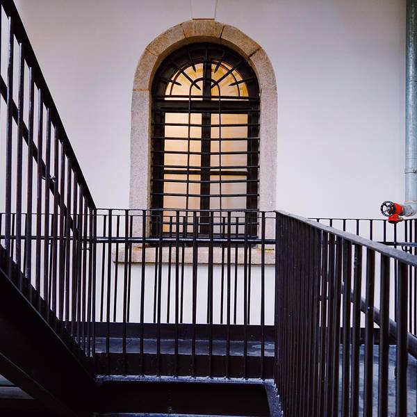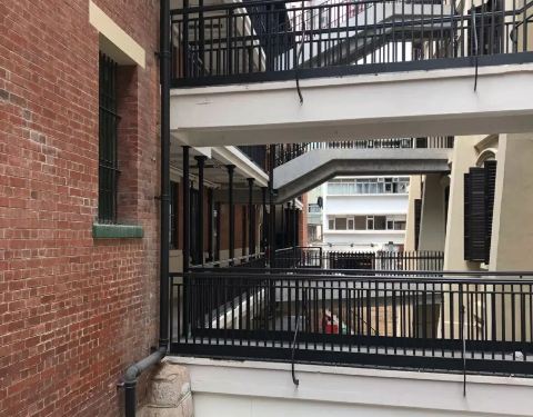 目前还保留着当时休息作用的铁质座椅以斑驳的石砖作为背景,仿佛电影画面感的视角重现...👆「随处可见的复古楼梯」